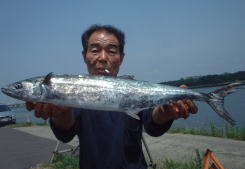 | コメント 鳥山を追ってワカシを釣っていたらサワラが来た、仕掛けが細いのでバラシが多かった。この次が楽しみだ! |