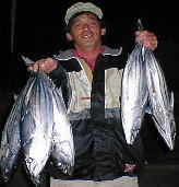 | コメント | 今日はあんまり海が良いので9時30分頃ティータイムの横山さんに電話したら、岸から石持ちを釣っていた。カツオを釣りに行こうと言ったら10時頃なら行けると言うので10時出発でカツオを釣りに行った。野島崎から潮をさがして東に行った、今までの経験で潮をさがす時は潮と直角に走るのが一番なのでそうした。やっと潮に当り一本釣ったのは14時30分頃だった、その後魚は見えたが、シラスを追っていて食いはいまいちだった。15時30分に道具をしまったが今期初ガツオまあまあかな!釣れた所の水温は19,8〜19,9度 |