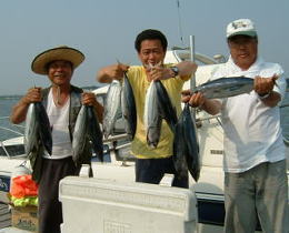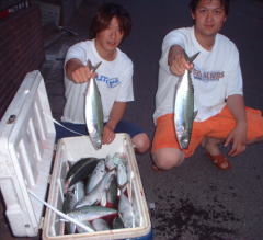 | コメント 平塚新港でキスを釣っていたら5時ごろ片倉和船で釣りに行くと言うので連れてってもらった。。潮目を見つけて鳥の動きを見ながら魚を追っていたら、すごかった!!イワシが船に付いた様だ、大サバが入れ食い、ルアーでこんなに釣れるのは信じられない |