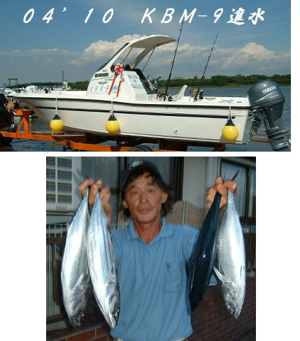 | コメント | KBM−9の進水式のあと海に出て運試し、するとトローリングでカツオとソーダが釣れた カツオは2kg以上あった。KBM−9はレンタルボートです、このボートは釣れそうだ! |