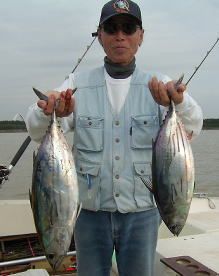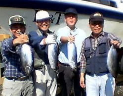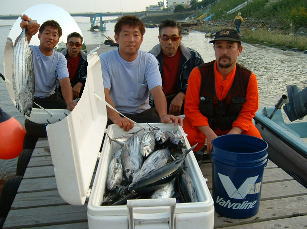 | トローリング大会は北風が強くボートの大きさや装備でハンディーがつくので中止、かわりに親睦会を行いました。 この日の釣果はほとんど全員がカツオを釣りました。エルボー&チーズが25匹で最高あとは10匹前後でした |