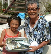 | コメント | 早朝の1時間でクーラー2BOX、その後 初島へ海水浴。帰りにトローリングをしながら来たら 黒いものすごく大きい魚がヒット、ものすごい勢いでラインが出るので思わずドラッグを締めたら、切れた 残念! | |||